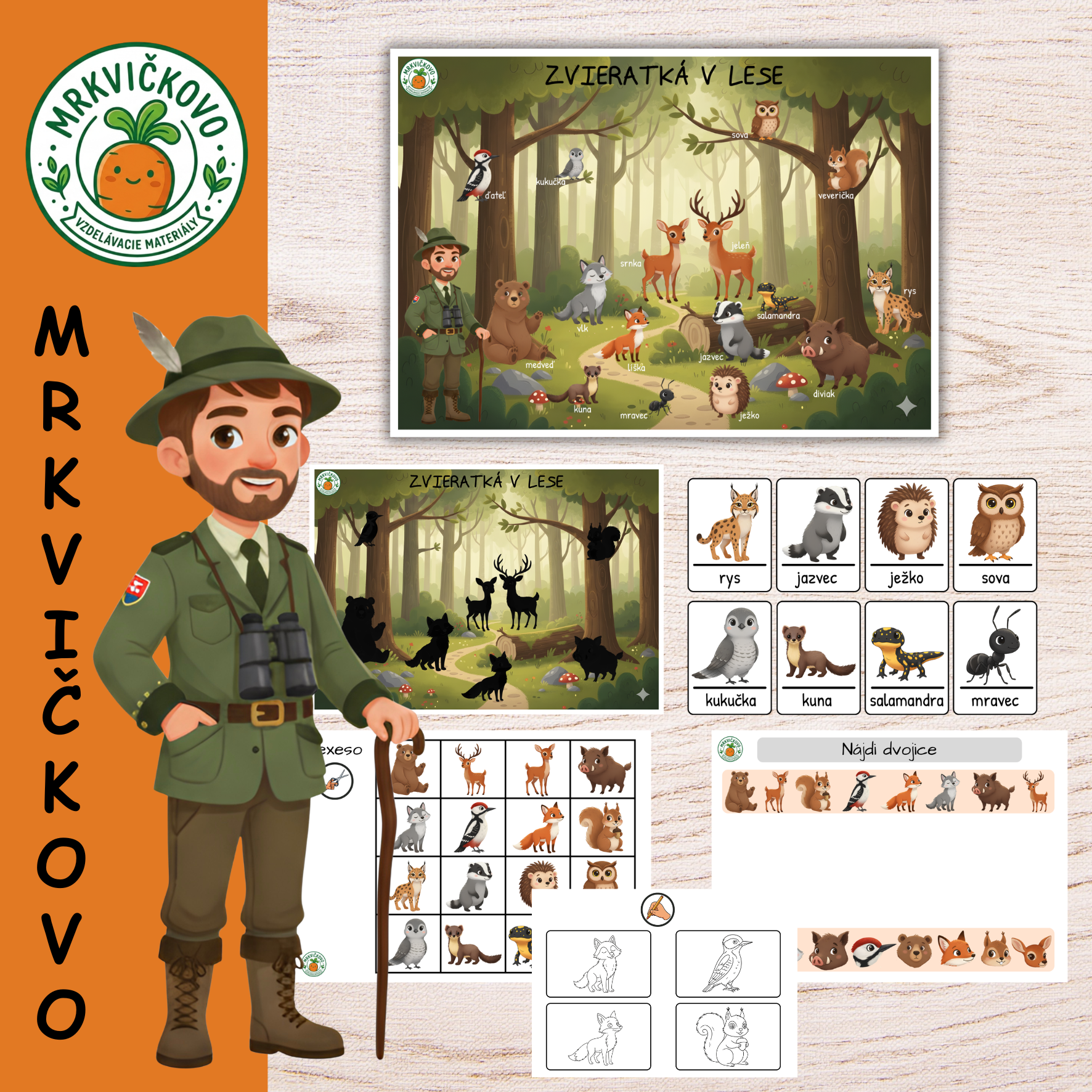 Objavte čaro lesa priamo u vás doma! Tento komplexný súbor aktivít je navrhnutý tak, aby deťom priblížil život lesných zvierat, rozvíjal ich pozornosť, logické myslenie a jemnú motoriku.