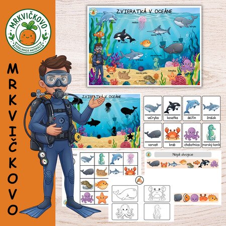 Ponorte sa pod hladinu a objavte tajomstvá šíreho oceánu! Tento vzdelávací PDF súbor z edície Mrkvičkovo zavedie deti do sveta fascinujúcich morských živočíchov. Hravou formou rozvíja kľúčové zručnosti ako sústredenie, logické myslenie a vizuálnu pamäť.