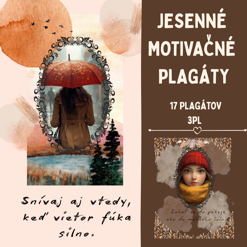 - Tento súbor 17 jemných motivačných jesenných plagátov prináša pokoj, vďačnosť a hrejivú náladu do každého školského dňa.