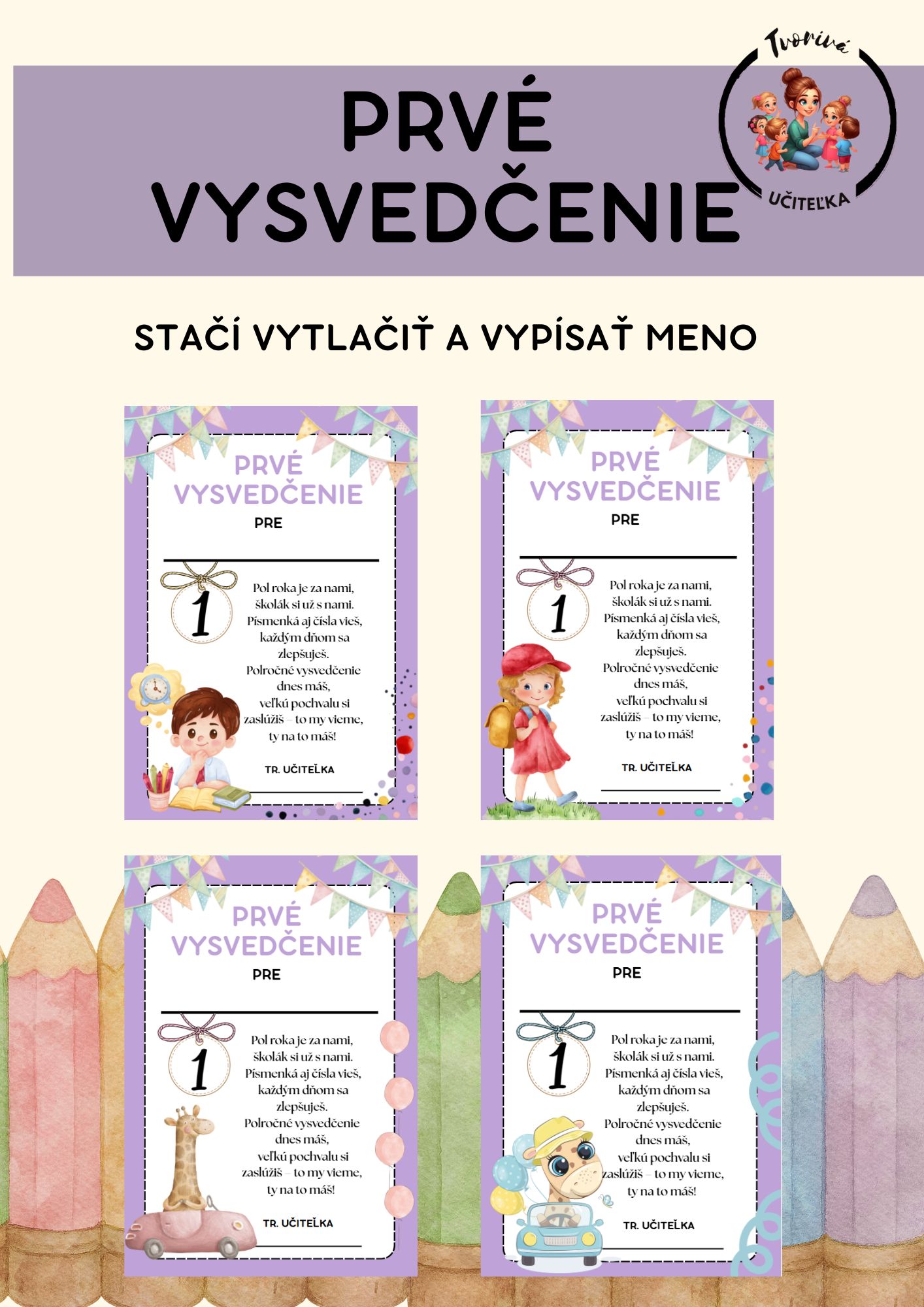Tento materiál obsahuje 4 druhy Môjho prvého vysvedčenia pre prvákov.