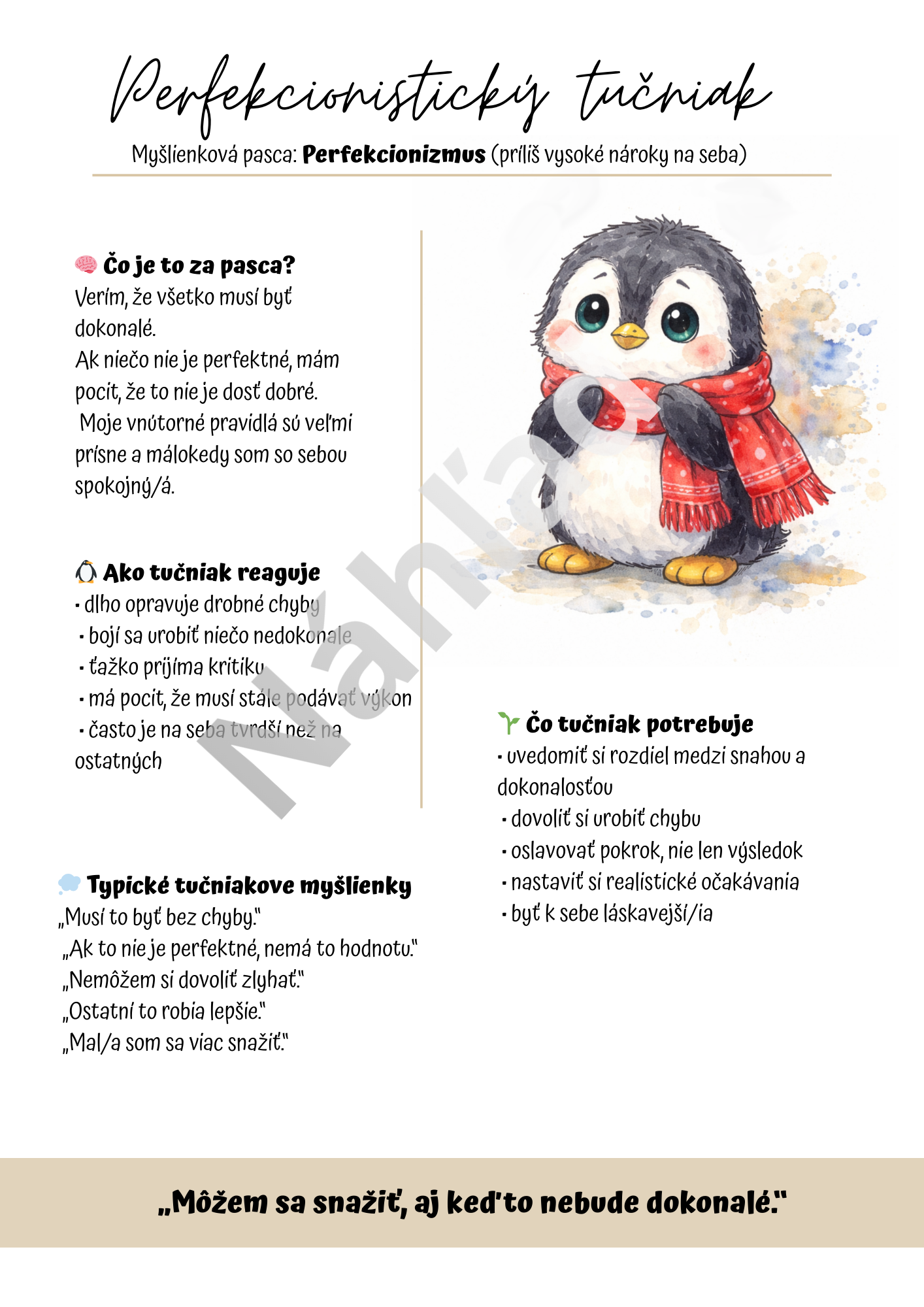 „Mám v sebe perfekcionistického tučniaka.“