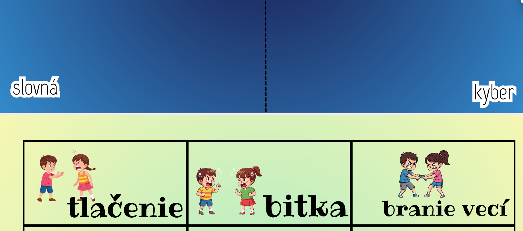 - Prevencia aj riešenie: Materiál pomáha budovať zdravú klímu v triede a dáva žiakom jasné návody, ako reagovať, ak sa niečo deje.