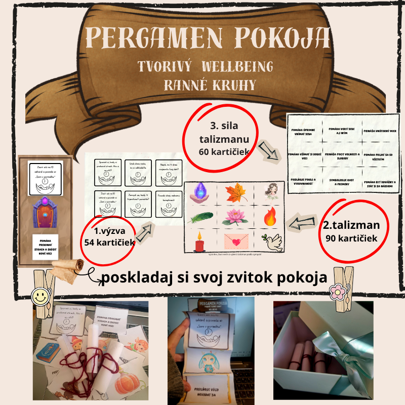 Pergamen pokoja- wellbeing / tvorivé ranné kruhy, skladačka pocitov, sebapoznanie, vnútorný pokoj