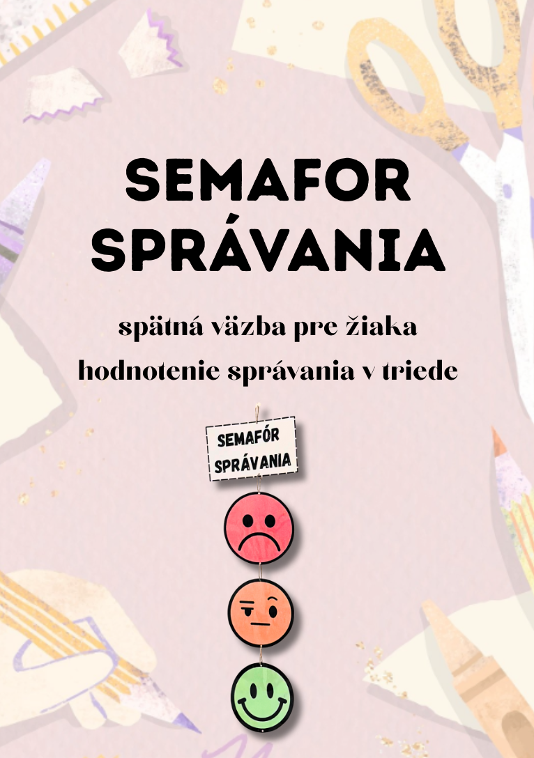 Materiál obsahuje nápis a 3 smajlíkov. Tento semafor využívam v praxi už zopár rokov a je to osvedčený mantinel pre žiakov a ich správanie. Môj spôsob využitia semaforu nájdete na 2. strane.