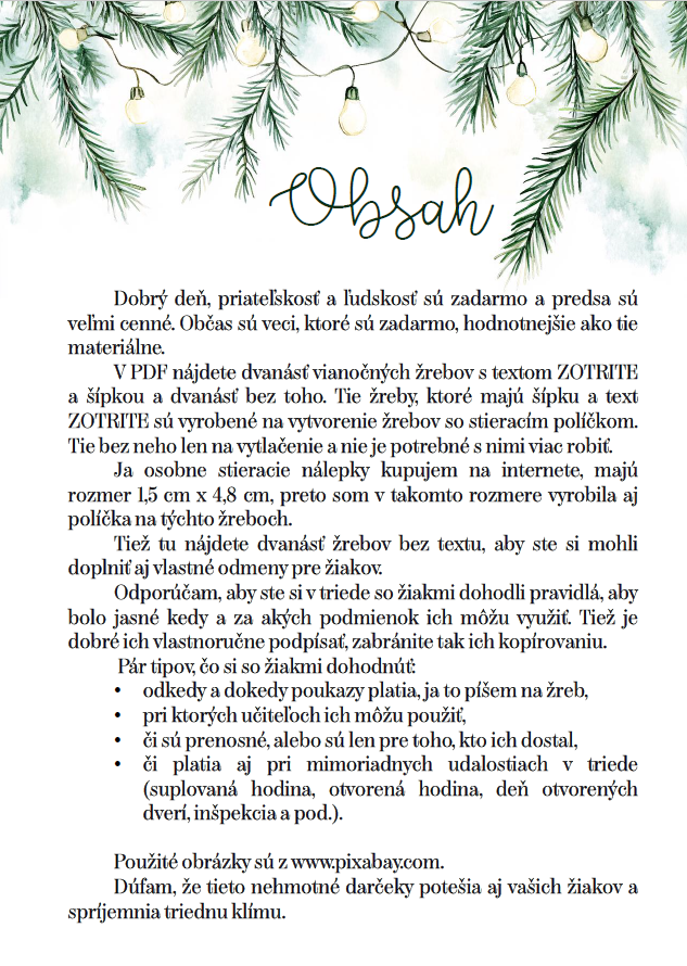 Tiež tu nájdete dvanásť žrebov bez textu, aby ste si mohli doplniť aj vlastné odmeny pre žiakov.