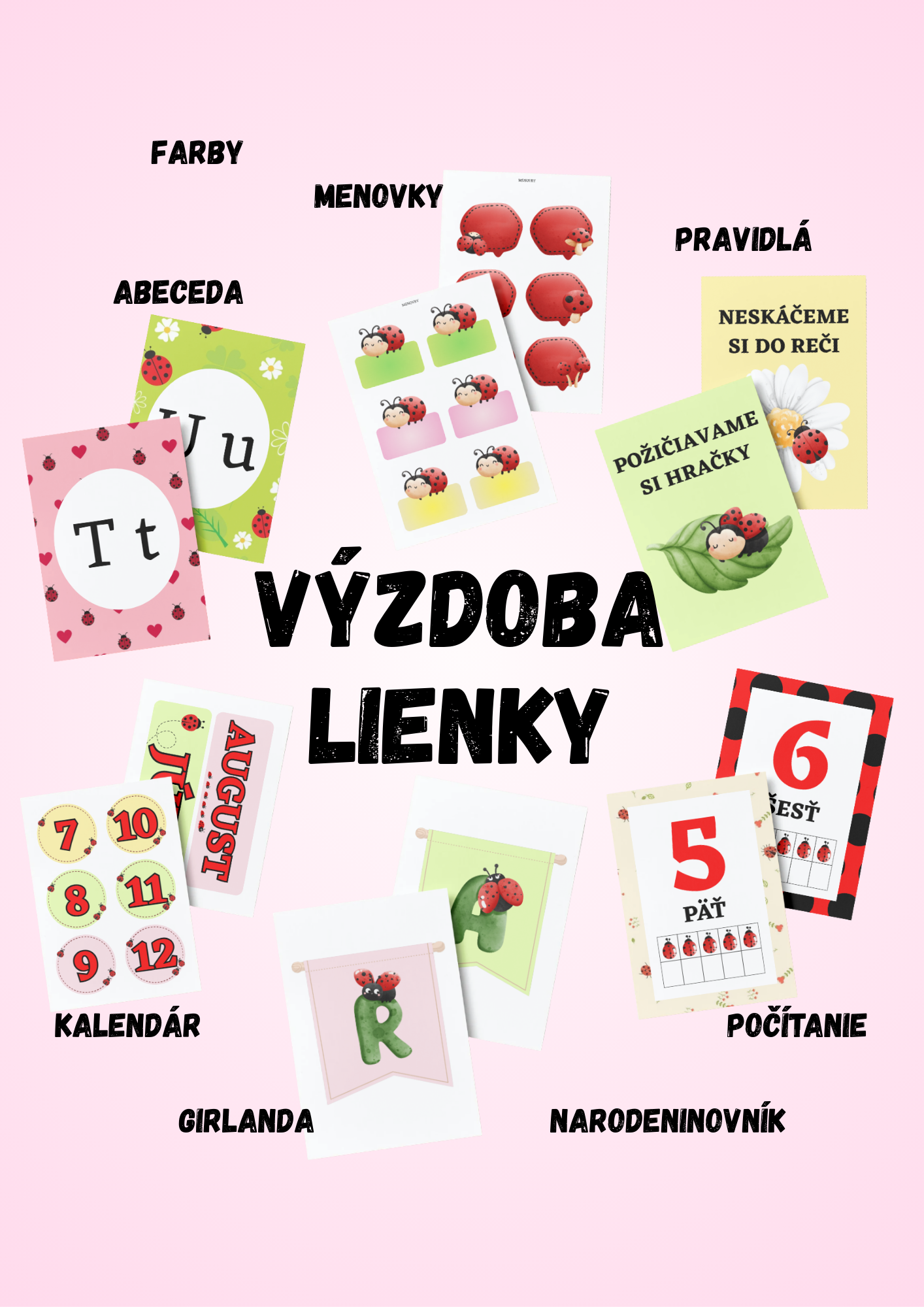 Výzdoba triedy v téme LIENKY. Súbor má 98 strán.