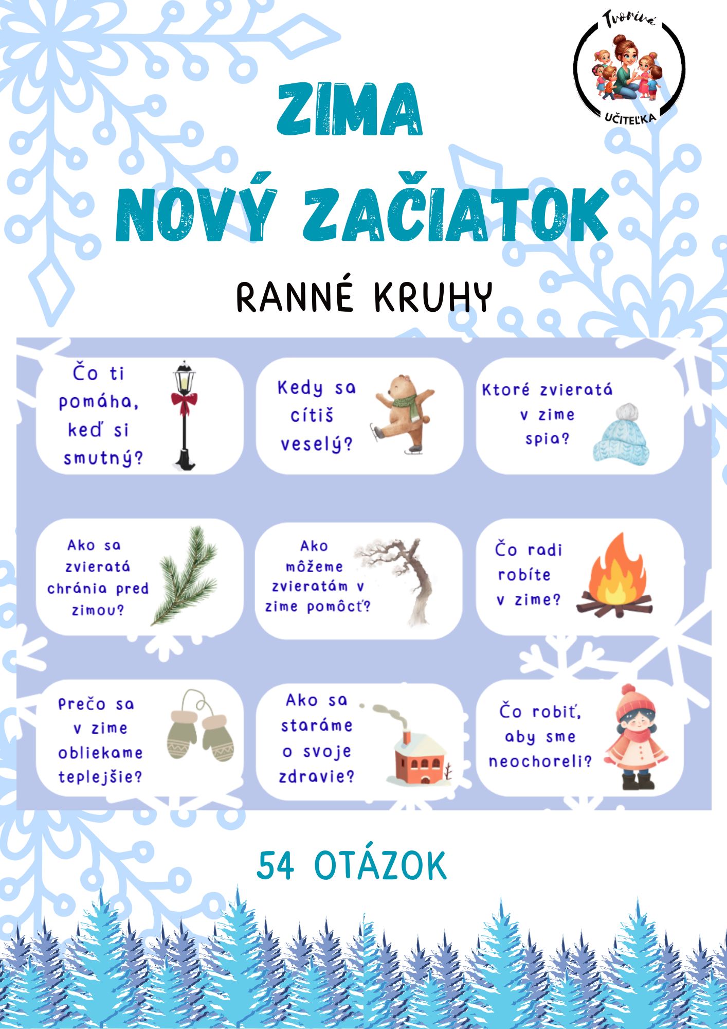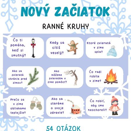 Materiál obsahuje 54 kariet na Vianočné ranné kruhy. Týka sa to tém: Zima, Nový rok, Nový začiatok, Prebúdzanie sa,...