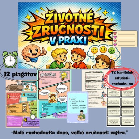 - Každý sa zameriava na jednu životnú zručnosť (napr. rozhodovanie, empatia, spolupráca, komunikácia).