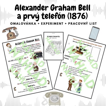 Tento hravý a zážitkový pracovný list predstavuje žiakom osobnosť Alexandra Grahama Bella a približuje im, ako vznikol prvý telefón v roku 1876. Deti sa dozvedia zaujímavosti, vyfarbia si tematickú omaľovánku a zamyslia sa nad tým, ako by vyzeral svet bez telefonovania.