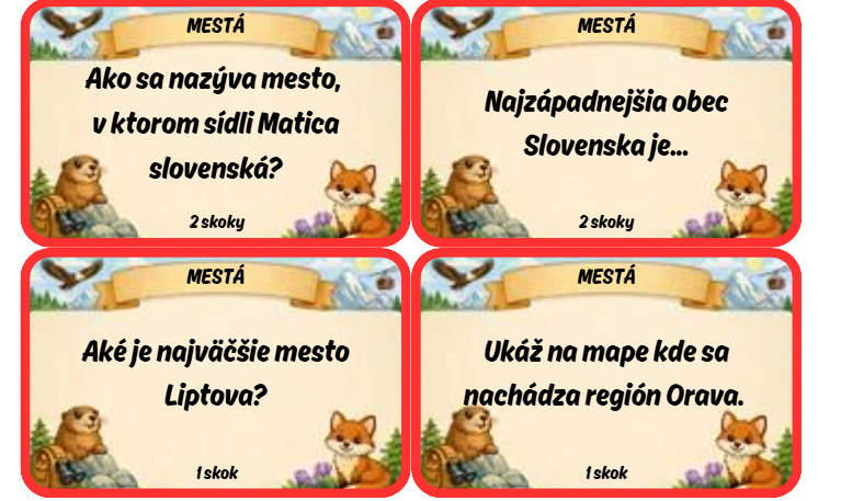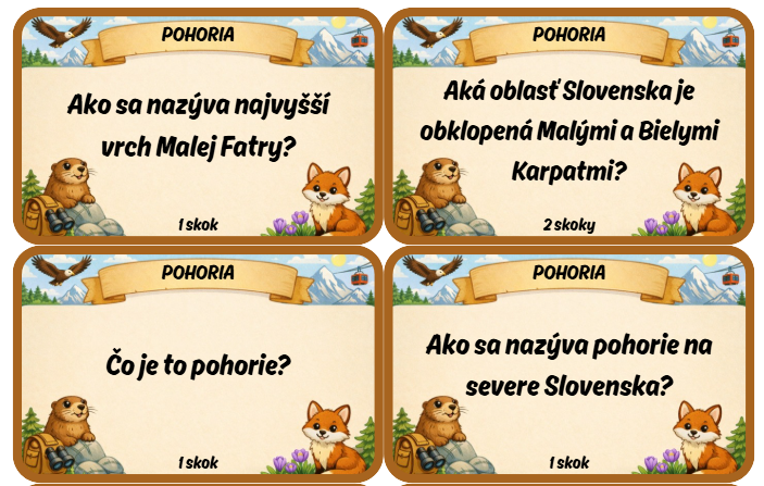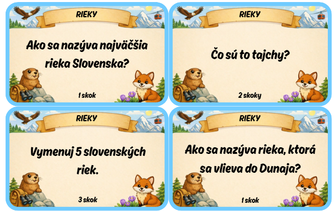 Ak odpovie správne, pohne sa s figúrkou o toľko, koľko je vyznačené na kartičke (skoky).