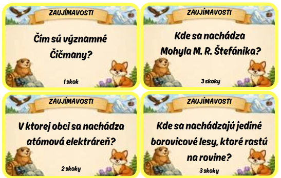 Súbor obsahuje hrací plán a kartičky s otázkami a hárok s odpoveďami.