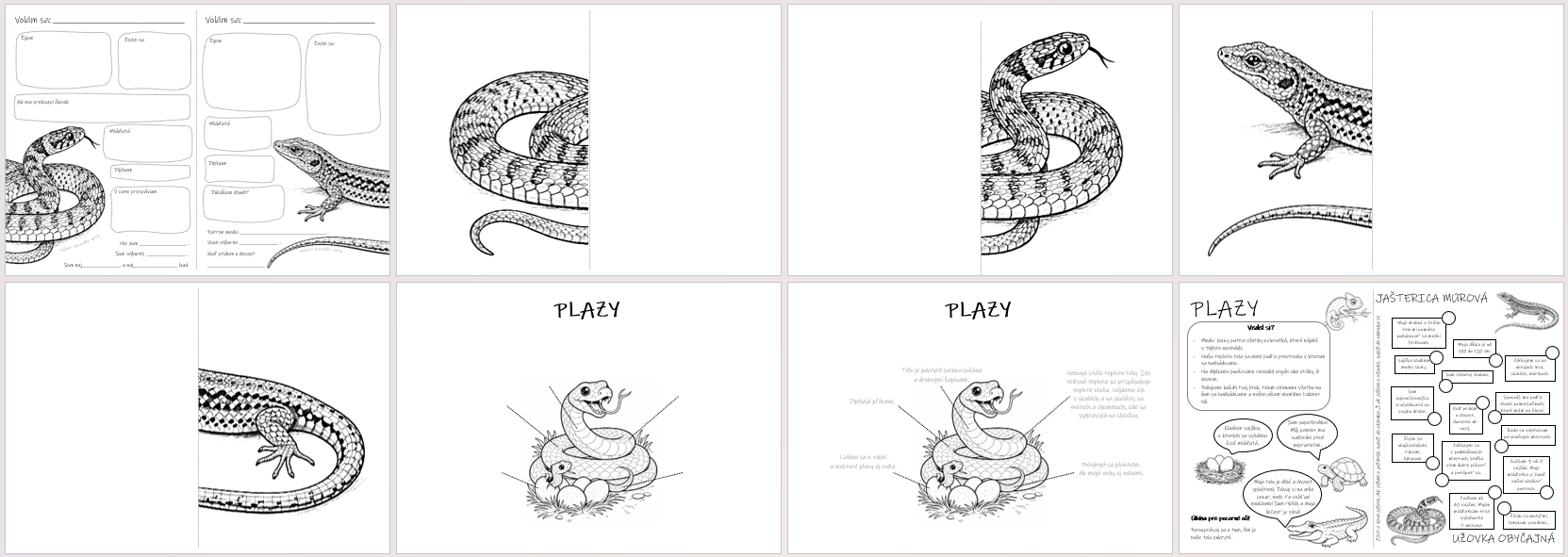 V súbore nájdete niekoľko aktivít k téme PLAZY, JAŠTERICA MÚROVÁ a UŽOVKA OBYČAJNÁ:
