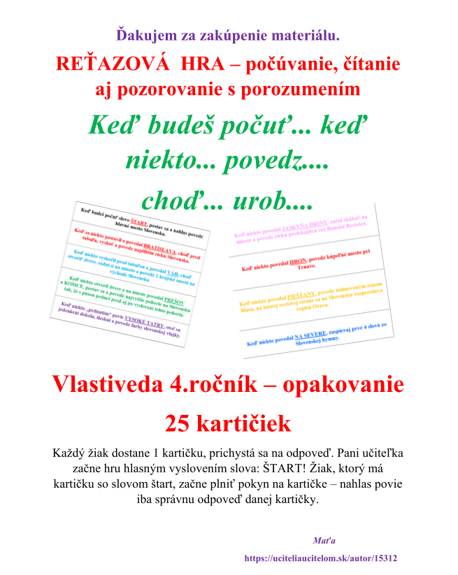 Ďakujem za zakúpenie môjho materiálu.