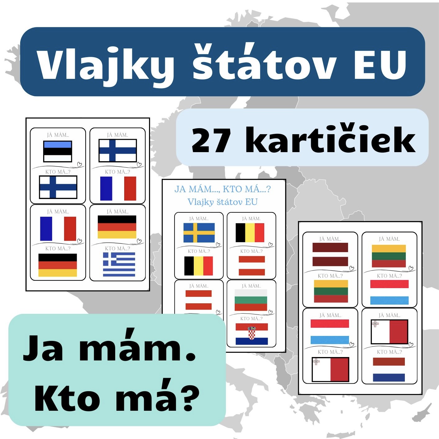 Hra je určená aspoň pre 2 hráčov. Deti hovoria: „JA MÁM vlajku Poľska. KTO MÁ vlajku Estónska?“ a takto pokračuje ďalší hráč až do vyčerpania všetkých kartičiek.