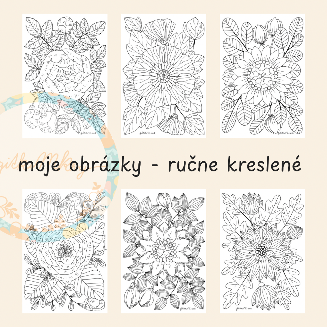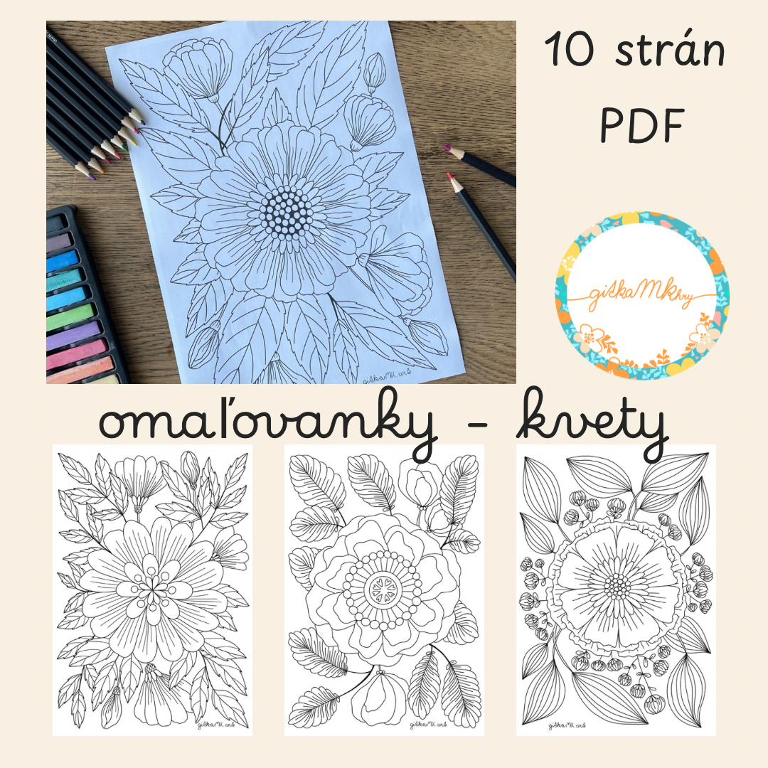 -10 PDF originálnych omaľovanok s motívom kvetov