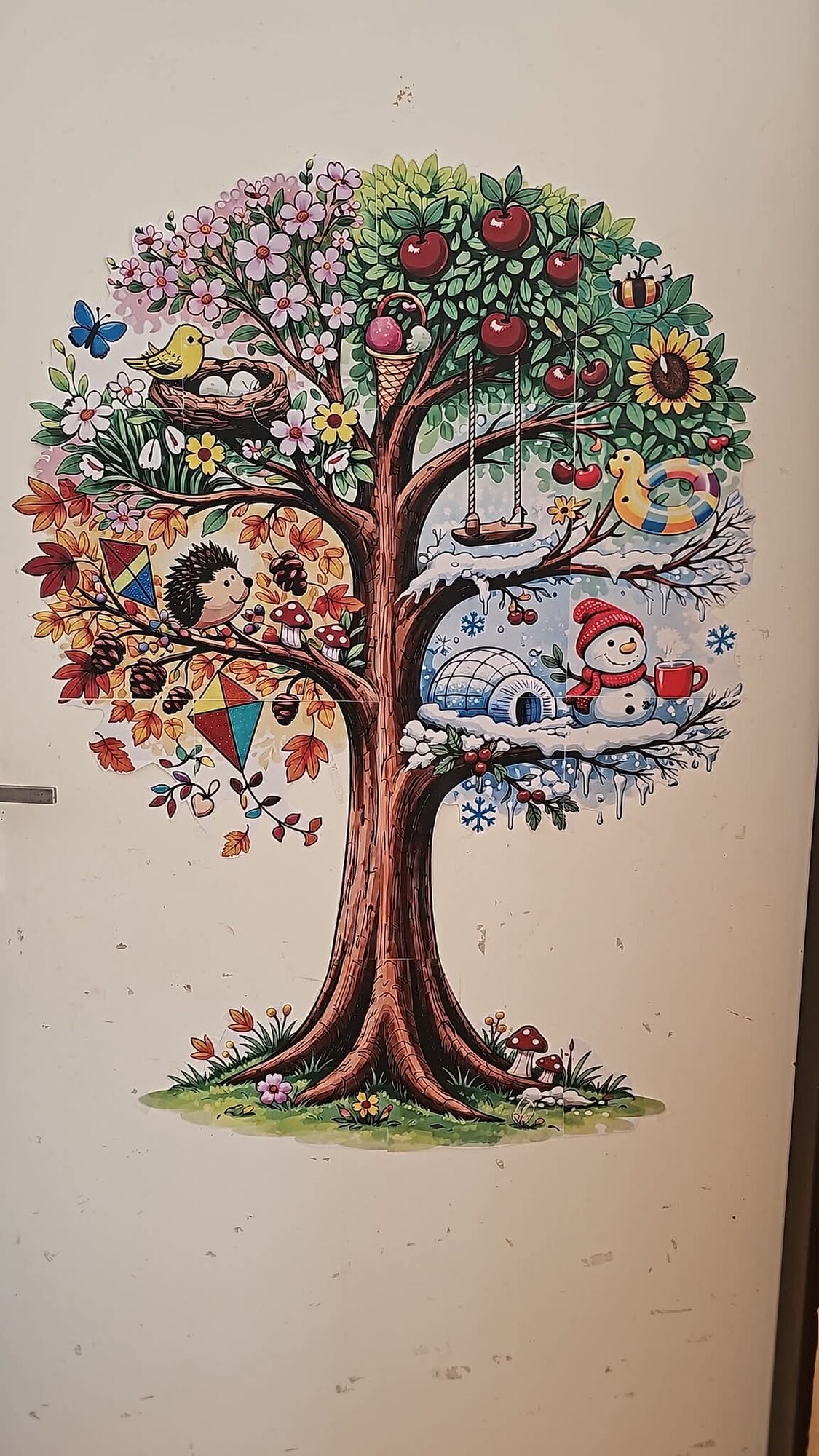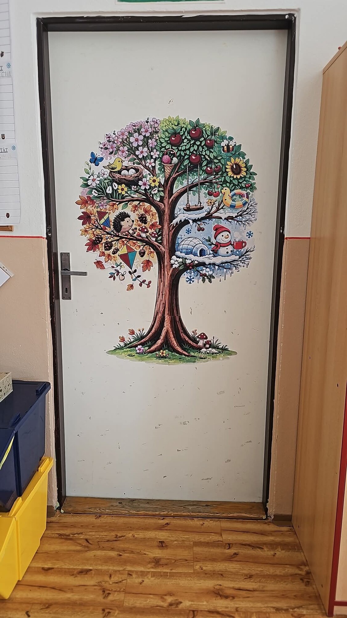 Strom môžete využiť nielen ako dekoráciu, ale aj ako didaktický prvok – na rozhovory o ročných obdobiach, zmenách v prírode alebo ako priestor na dopĺňanie vlastných prác detí.