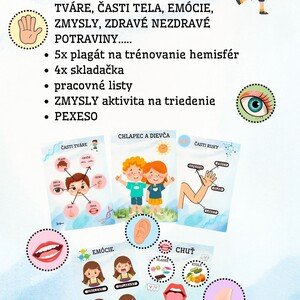 MOJE TELO 23x plagát o ľudskom tele-ČASTI TVÁRE, ČASTI TELA, EMÓCIE, ZMYSLY, ZDRAVÉ NEZDRAVÉ POTRAVINY..... 5x plagát na