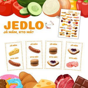 Súbor obsahuje: 28 kartičiek určených k hre "Ja mám, kto má" s obrázkami potravín, zoznam jednotlivých obrázkov s