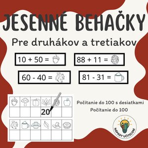 JESENNÉ BEHAČKY 2 Určené druhákom a tretiakom. Počítanie do 100 s desiatkami aj bez. Sčítanie a odčítanie. Súbor po