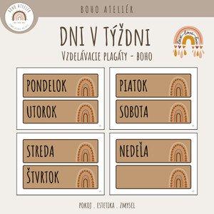 Sada boho plagátov s dňami v týždni, navrhnutá ako súčasť modulárneho triedneho kalendára. Plagáty slúžia ako základný
