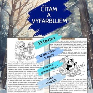 Čítam a vyfarbujem Materiál obsahuje 12 zimných a vianočných príbehov, pri ktorých deti nielen čítajú, ale aj aktívne