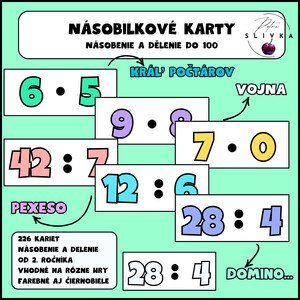 Táto sada obsahuje kompletný súbor príkladov z malej násobilky a zodpovedajúcich deliacich operácií (spolu 226 kariet +
