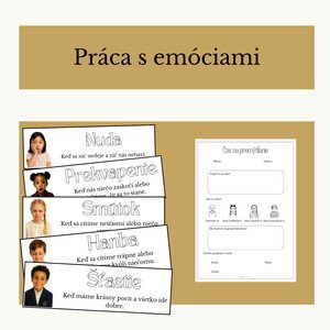 Práca s emóciami 1. Väčšie kartičky (12 kartičiek) Vytlačte všetky kartičky farebne a zalaminujte ich. Do rohu každej