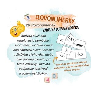 Slovonumerka je slovná hračka. Úlohou žiaka je umiestniť kartičku s číslom na správne miesto tak, aby po prečítaní slovo