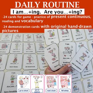 - 6 strán formátu A4 - 24 herných kariet „Já mám… Kto má…?“ – teda „I am ... -ing. Are you ... -ing?“ (tvorenie vety a