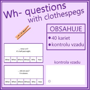 Obľúbená aktivita so štipcami na rýchle a efektívne precvičenie Wh-questions a ich použitie vo vete. Žiak pomocou