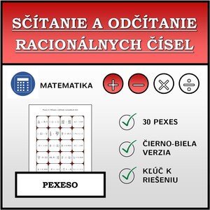 Obsah výučbového materiálu V materiáli sa nachádza celkom 30 sád pexesa na tému odčítanie racionálnych čísel v