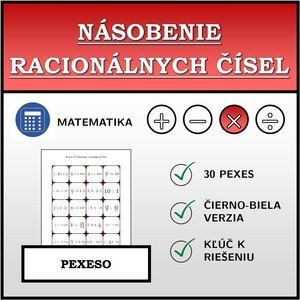 Obsah výučbového materiálu V materiáli sa nachádza celkom 30 sád pexesa na tému násobenie racionálnych čísel v