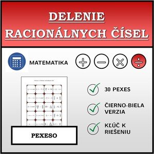 Obsah výučbového materiálu V materiáli sa nachádza celkom 30 sád pexesa na tému delenie racionálnych čísel v