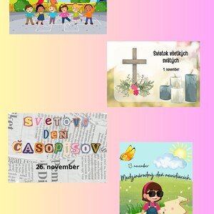 Súbor obsahuje 7 plagátov na významné dni v mesiaci november ako: Deň materských škôl, Sviatok všetkých svätých