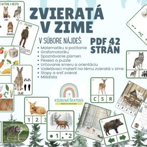 Pripravila som pre vás a obsiahly vzdelávací súbor na tému Zvieratá v zime. Je to skvelý pomocník, ako deťom priblížiť