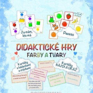 Didaktické hry zamerané na rozlišovanie farieb a tvarov hravou formou. 🎲 Materiál podporuje rozvoj slovnej zásoby