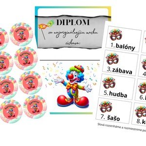 Materiál na karneval: medaily diplomy aktivita (hľadanie slov)