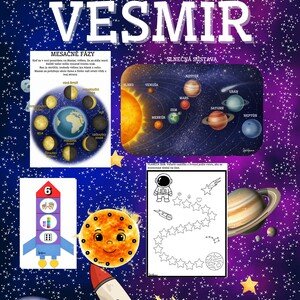 MATERIÁL OBSAHUJE: 46 STRÁN 18 PLAGÁTOV O VESMÍRE AKTIVITU LET DO VESMÍRU-rozpoznávanie farieb, ukladanie podľa predlohy