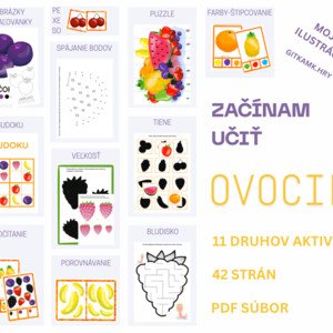 Súbor aktivít s obrázkami, omaľovánkami a ukážkami aktivít, ktoré môžete využiť ak sa s deťmi učíte o ovocí. Tento súbor