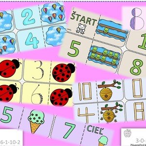 Matematické domino - určovanie počtu do 10 Aktivita obsahuje 10 súborov. Jeden zo súborov je na určovanie počtu do 6