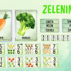 Materiál slúži ako pomôcka k spoznávaniu ZELENINY- predčitateľská gramotnosť a na počítanie, spoznávanie číslic. V