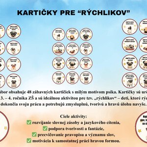 Tento súbor obsahuje 48 zábavných kartičiek s milým motívom psíka. Kartičky sú určené pre žiakov 3. – 4. ročníka ZŠ a sú
