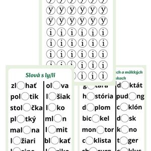 Aktivita je zameraná na dopĺňanie i/y. Slúži na zopakovanie slov s ly/li a výnimiek po mäkkých a tvrdých spoluhláskach