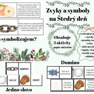 Zvyky na Štedrý deň je súbor 3 aktivít. Prvá aktivita- “Čo symbolizujem?” Slúži na základné spoznanie vybraných symbolov