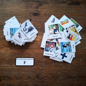 Logopedické kartičky na hlásku F - 54 kusov s rozmerom 8x6 cm. Vznikli v spolupráci s logopédom. Jednotlivé slová sú