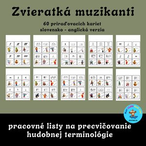 Spolu so zvieratkami muzikantmi si budeme precvičovať hudobnú terminológiu. Zahrnuté sú noty, pomlčky, posuvky, hudobné
