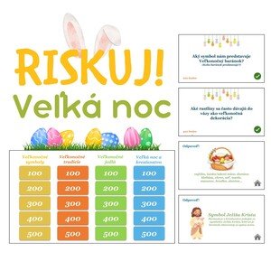 Interaktívna hra Riskuj! na tému Veľkej noci. Žiaci odpovedajú na otázky z rôznych oblastí spojených s Veľkou nocou a