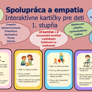 Spolupráca a empatia - interaktívne kartičky pre deti 1.stupňa Tento balíček je interaktívny vzdelávací materiál určený