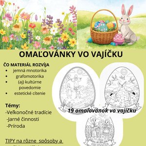 Omaľovánky vo vajíčku – Jar & Veľká noc Tematické jarné a veľkonočné omaľovánky ukryté v tvare vajíčka, ktoré prepájajú