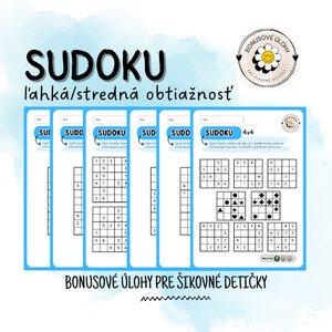 Súbor obsahuje 16 rôznych úloh sudoku, ktoré sú vhodné napríklad ako bonusové úlohy pre šikovné detičky, ktoré už